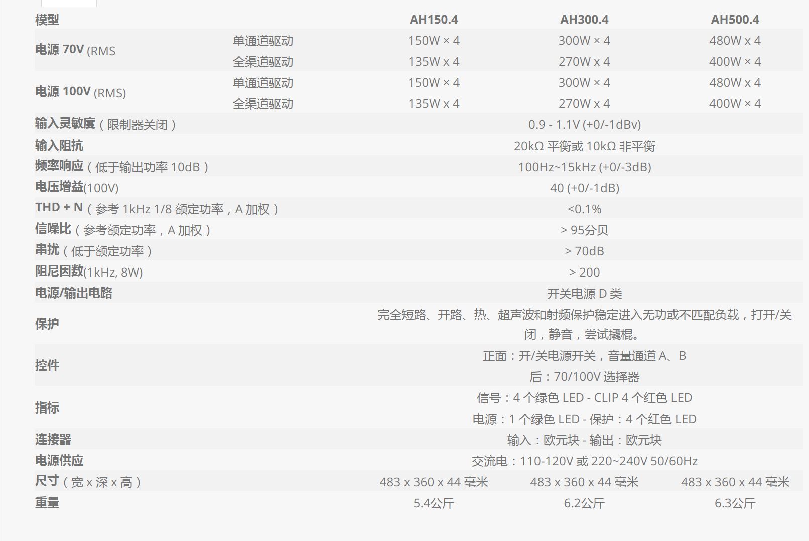 多通道高压D类功放AH150.4/AH300.4/AH500.4