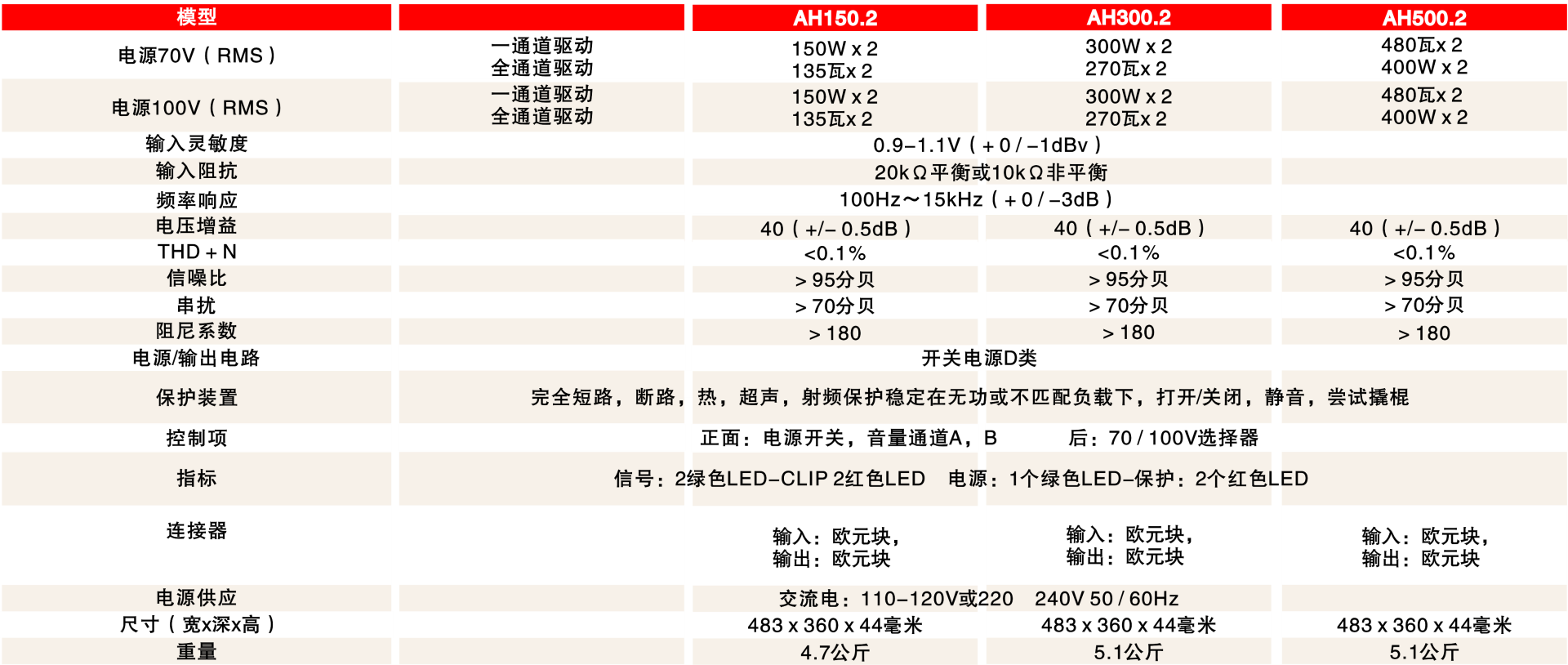 2通道低阻抗D类功放AH150.2/300.2/500.2